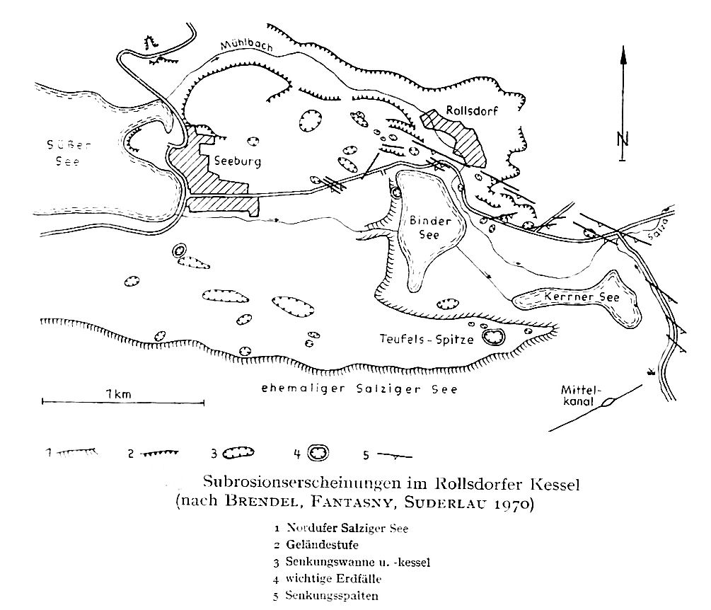 Karte der Subrosionserscheinungen im Raum Rollsdorf-Seeburg (nach BRENDEL, FANTASNY, SUDERLAU 1970)