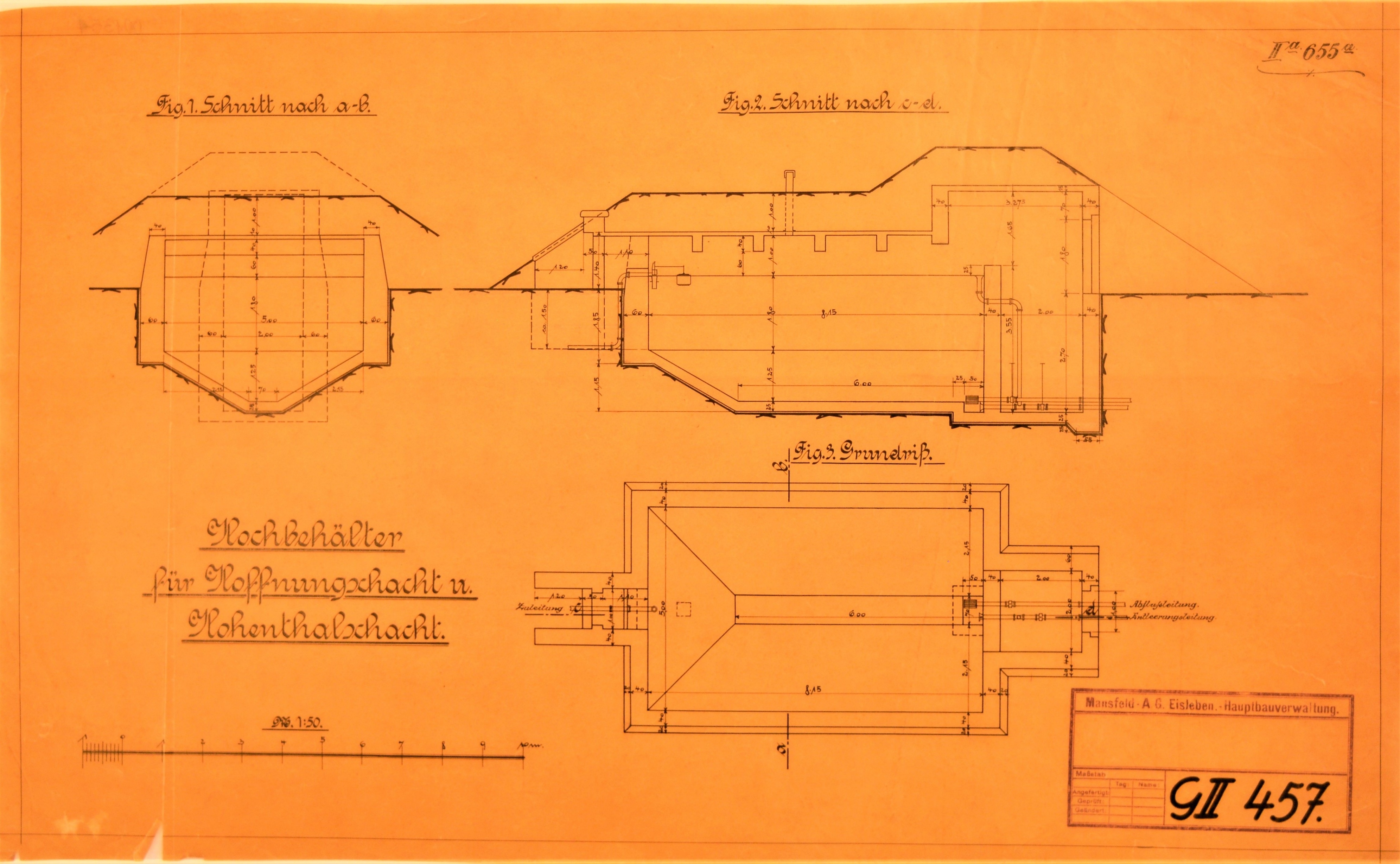 die Entleerungsleitung. Unten rechts ist ein Stempel der Hauptbauverwaltung der Mansfeld-